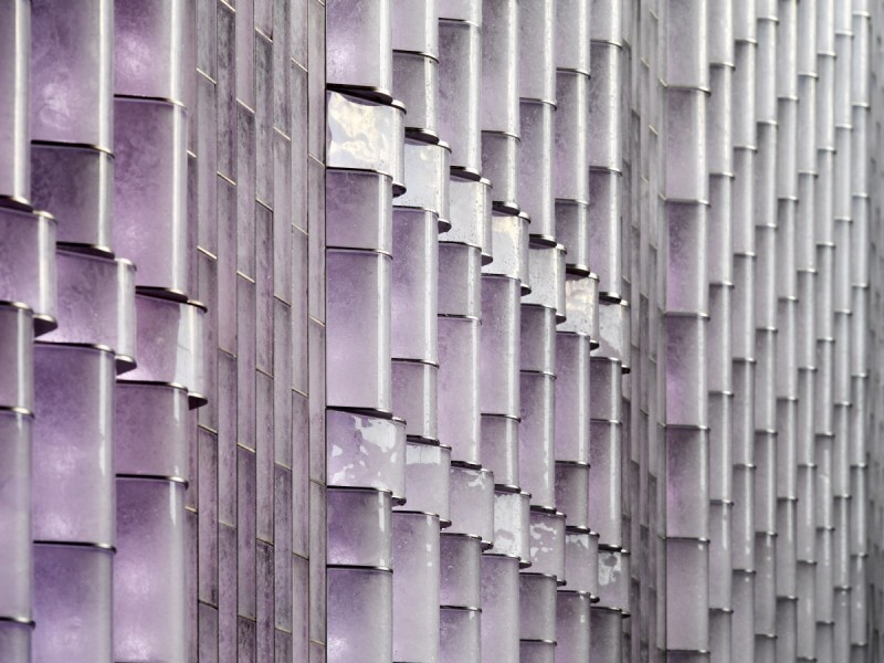 Van Tetterode developed especially for this bicycle tunnel a bend glass panel that allows only difused light to pass through. The tunnel is 2 x 54 meter long. The walls are made of glass panels in stainless steel made by Fiction Factory. The light behind the panels was done by Phillips lighting. The lighting is completly interactive.